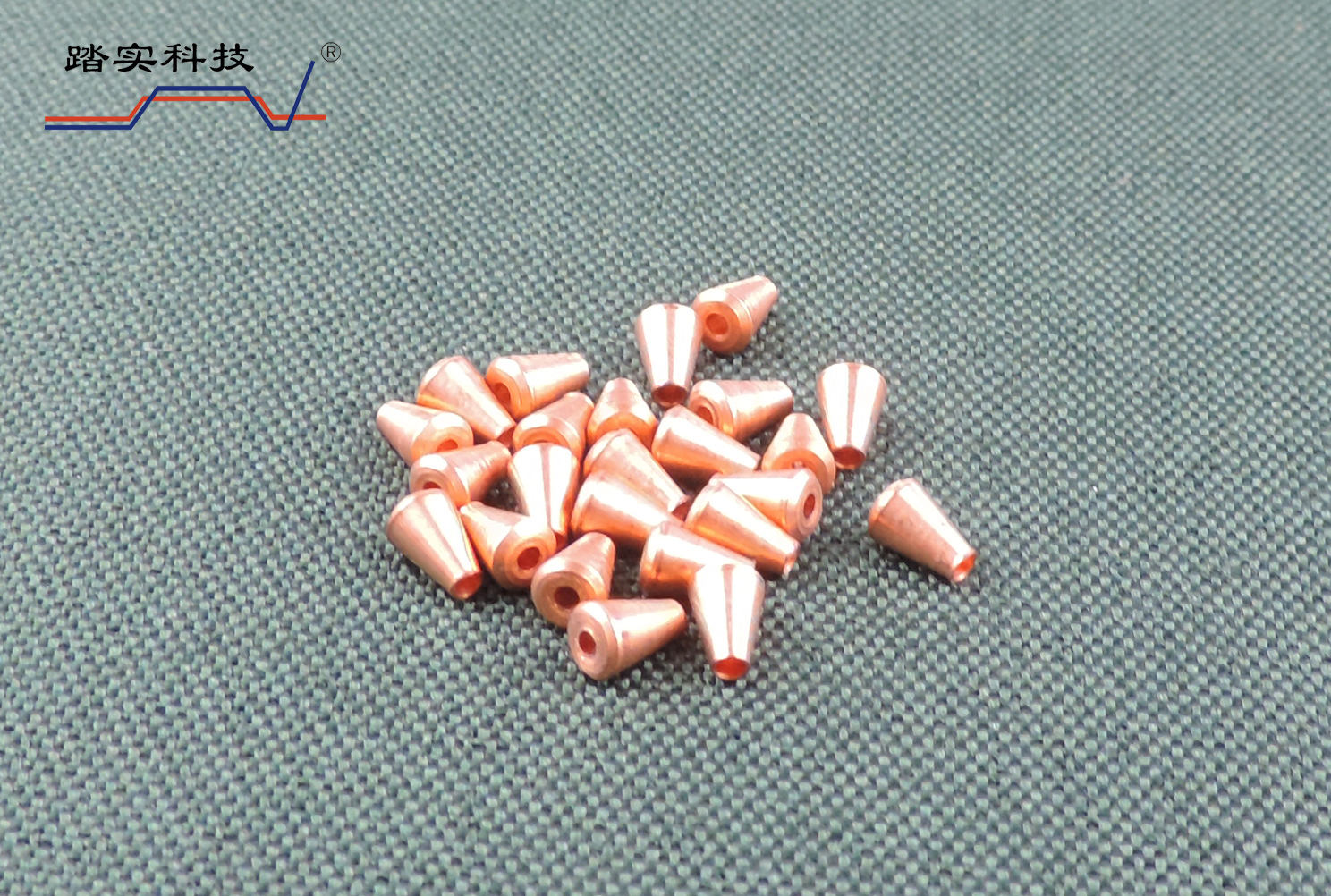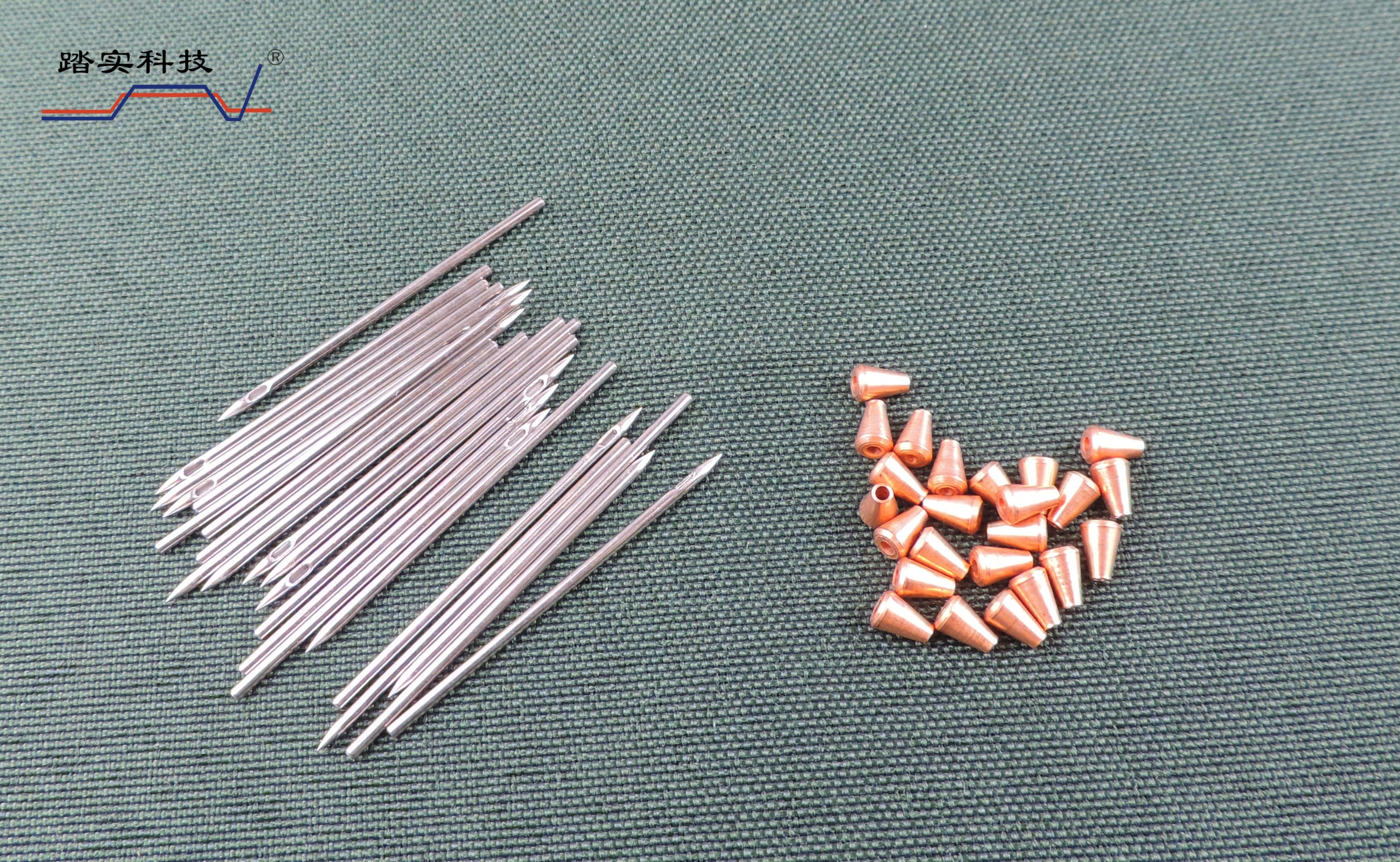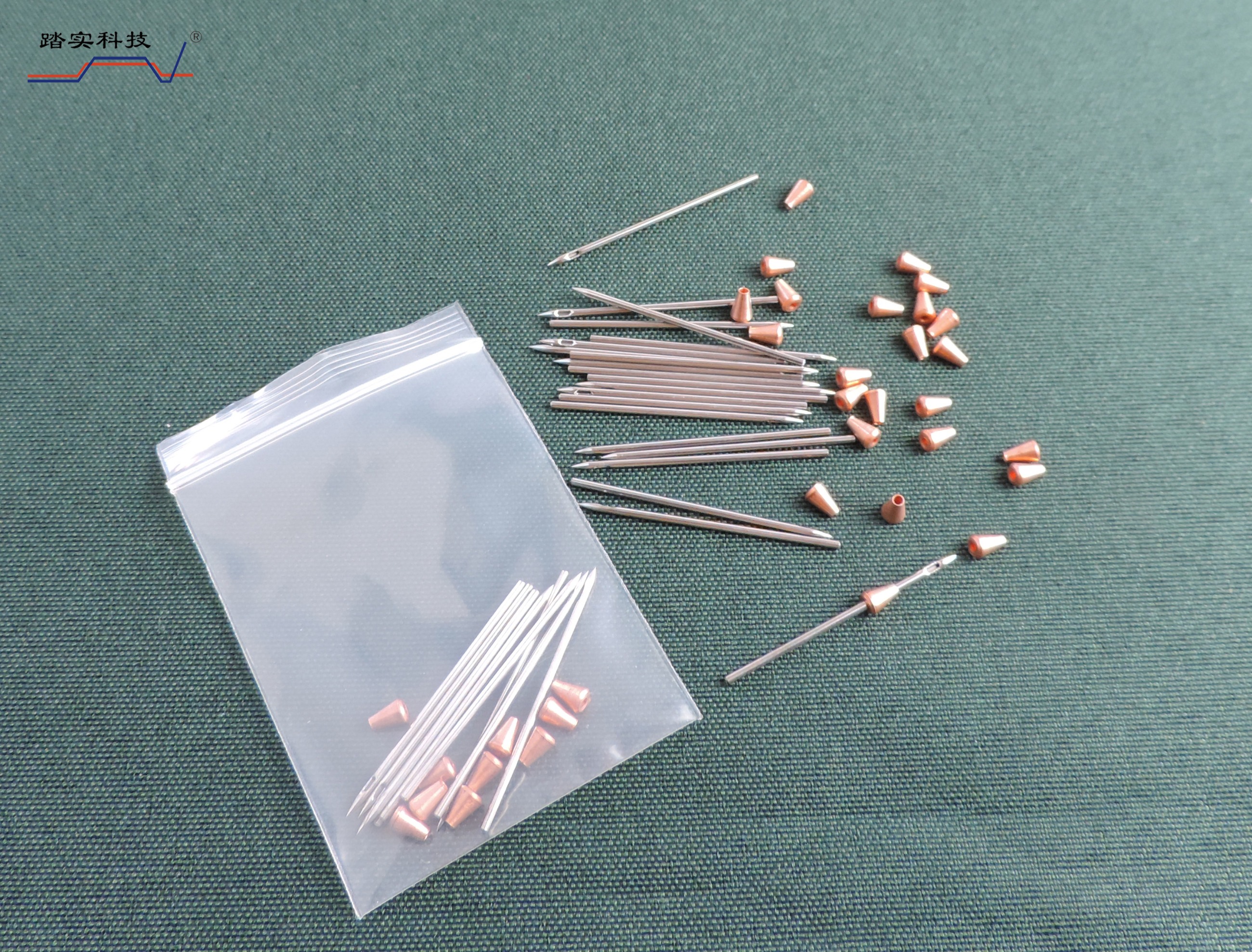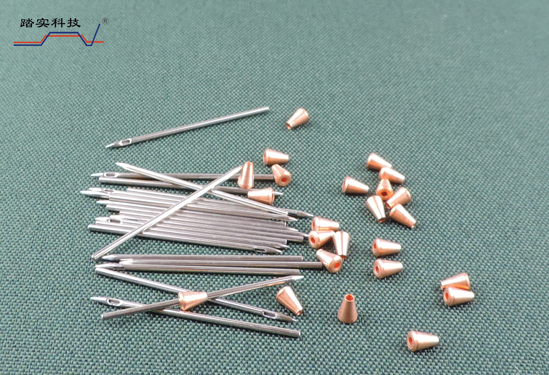 注意紫銅墊錐形方向朝向針頭兩通,針尾超出紫銅墊約1毫米,可以先輕擰螺母使紫銅墊不滑動,然后用尖嘴鉗調整與針尾的距離為1毫米,
